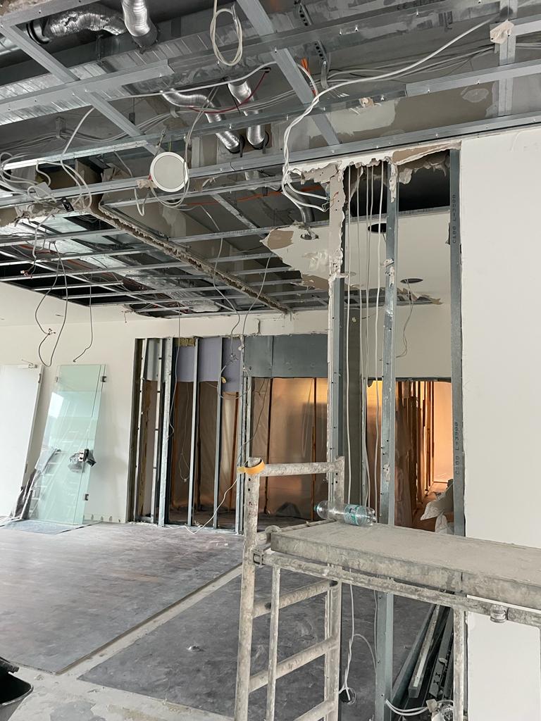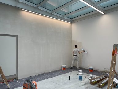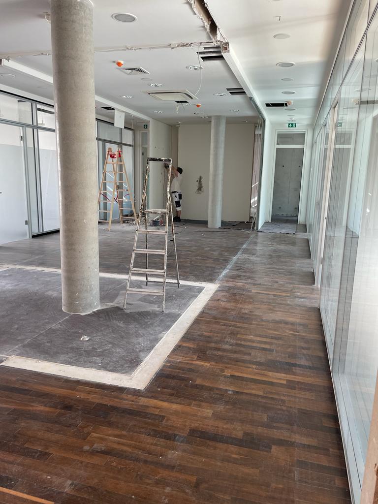 Der Ausbau des Gewerbes umfasste Trockenbau-, Estrich-, Betonschneide- und Malerarbeiten sowie den Einbau von Türen.