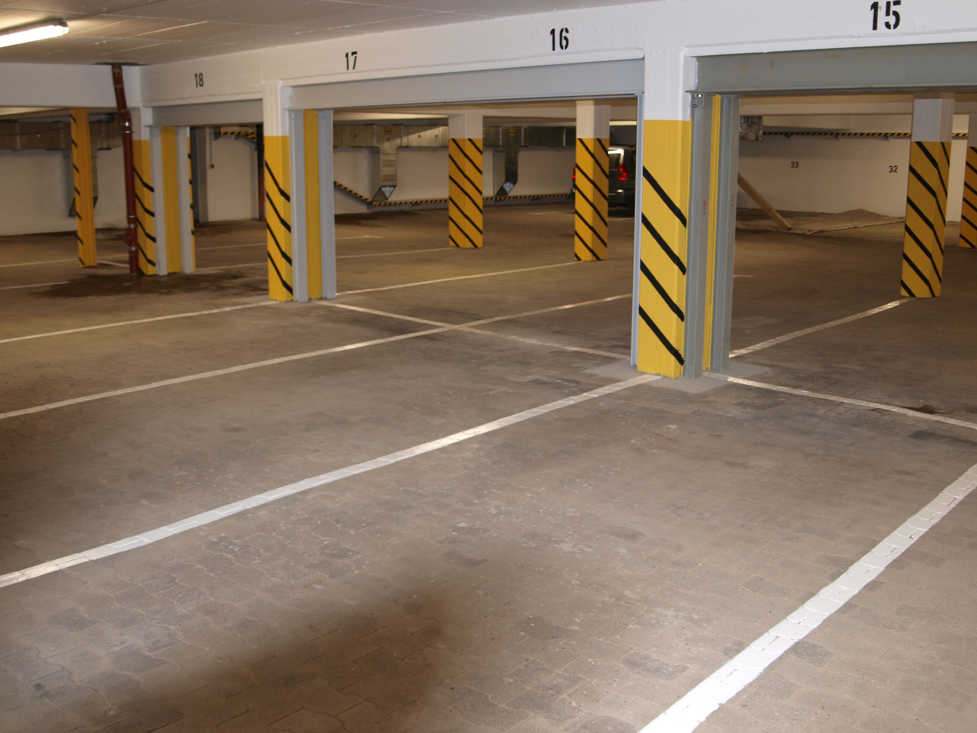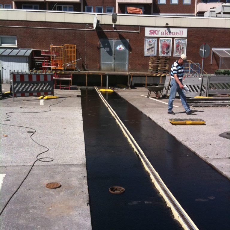 Im Rahmen der Tiefgaragensanierung wurden umfangreiche Sicherungsmaßnahmen durchgeführt. Ergänzend erfolgten Betoninstandsetzungs-, Stahlbau-, Elektro- und Maler- und Markierungs- sowie Asphaltarbeiten.